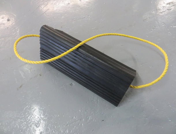 The MGF-0152 Aircraft Wheel Chock is made from the largest aircraft chock extrusion we make with a face dimension of 225mm to handle some of the largest aircraft in use today. This chock is supplied with a yellow rope for carrying and for pulling the chock from the aircraft wheel by hand.