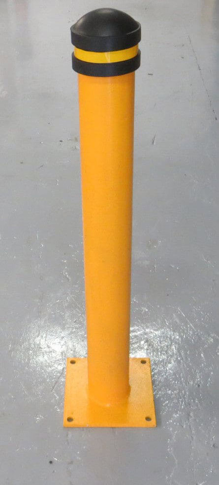 This robust bolt down steel bollard has an additional yellow powder coat over the galvanised base. It comes complete with a moulded rubber cap. The cap has a band of highly reflective tape. It has a simple bolt down installation.
