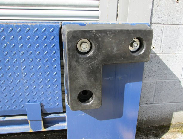 The MGF-0005 “L” shaped bumper gives extra protection along the top edge of the loading dock where other dock bumpers do not. The 10010005 Dock Bumper is the handed front plate for this bumper. There is no compatible back plate.