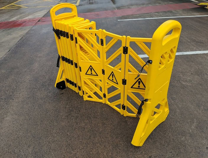 The MGF-0692 is an expandable concertina barrier with wheels on one side which means it is movable and deployable by one person. Ideal for cordoning off areas of retail premises or workshops.