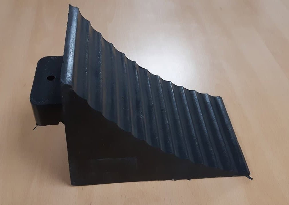 The MGF-0679 is an all rubber version of our excellent MGF-0141 fibre filled wheel chock, hard wearing with moulded handle.